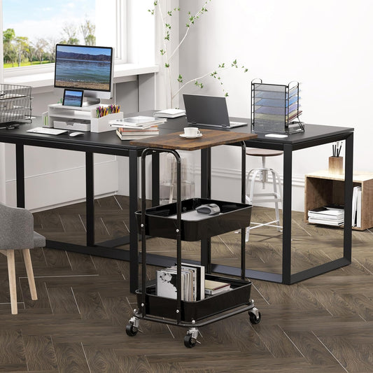 Simple Houseware 2-Tier Rolling Utility Cart with Lockable Wheels and Wood Top, Metal Storage Organizer Trolley for Kitchen, Bathroom, Office, Craft Room, Black