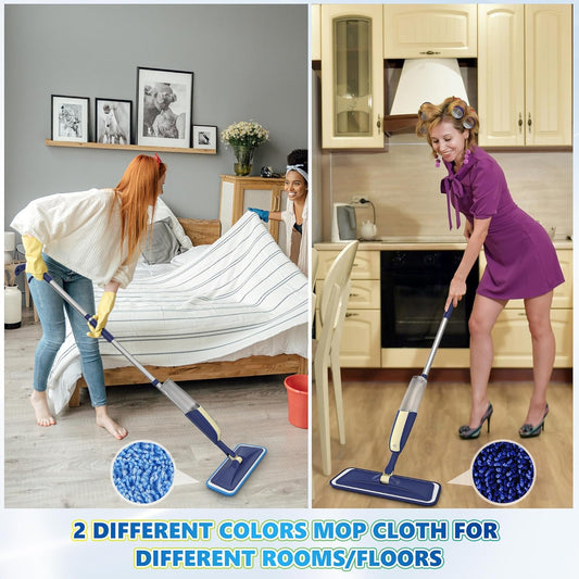 Spray Wet Mops for Hardwood Floor Cleaning - MEXERRIS Microfiber Dust Mop with Spray 3X Reusable Washable Pads Hard Wood Floor Mops Commercial Home Use for Laminate Wood Tiles Hardwood