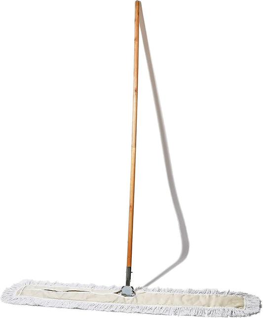 Nine Forty 36" Premium Cotton Dust Mop Kit - Heavy Duty Mop Head with Wood Handle for Industrial, Commercial, and Residential Cleaning - Dry Floor Duster for Hardwood Surfaces - White