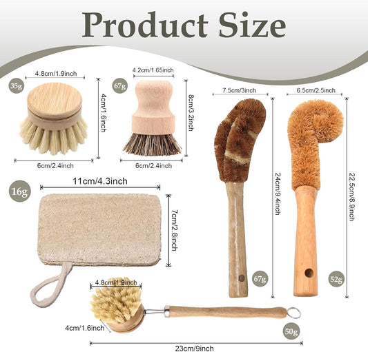 Haploon 7 Piece Wooden Dish Brush Natural,Bamboo Brush Kitchen Set Dish Cleaning Brush Pot Brush & Bottle Cleaner Beech Wood & Natural Bristles Bamboo Scrub Brush for Dishes Plastic Free