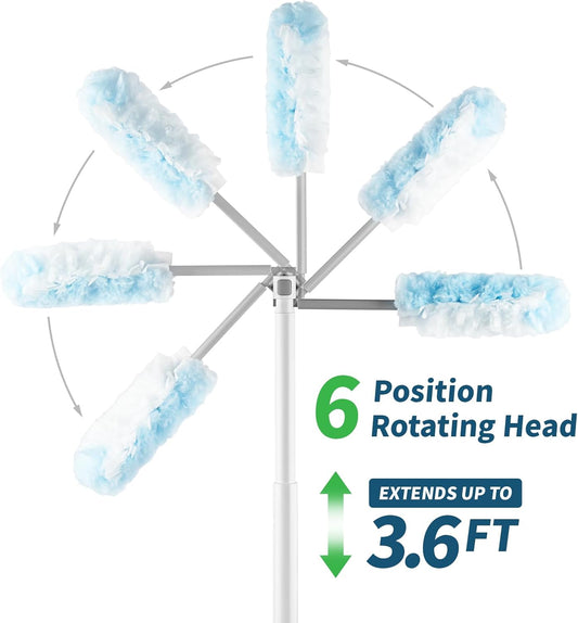 Microfiber Duster Kit (11PCS) - Washable Dusters with Extension Pole (30 to 100 in) for Cleaning Ceilings, Fans, Furniture