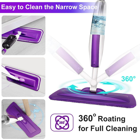Spray Mops for Floor Cleaning Floor Mop with a Refillable Spray Bottle and 3 Washable Microfiber Pads Home or Commercial Use Dry Wet Flat Mop for Hardwood Laminate Wood (Pure Purple)