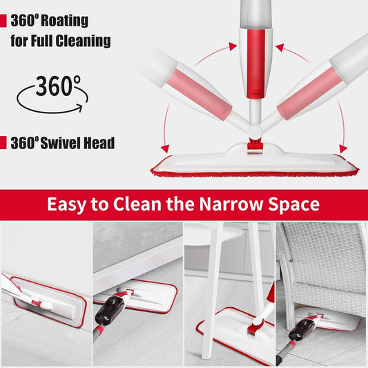 Spray Mops for Floor Cleaning Floor Mop with a Refillable Spray Bottle and 2 Washable Microfiber Pads Home or Commercial Use Dry Wet Flat Mop for Hardwood Laminate Wood (Red)
