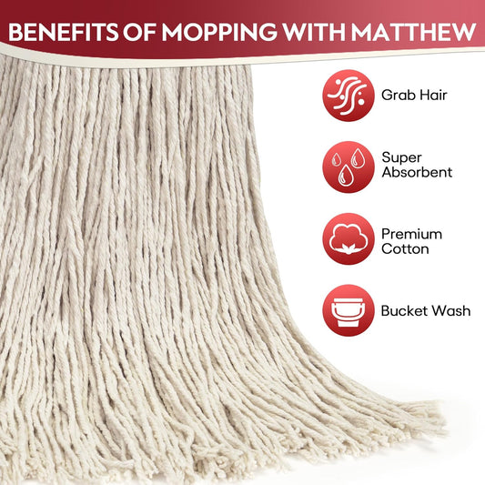 Matthew Cleaning Looped-Open Disposable Industrial Wet Mop Head 1.25'' Universal Headband Non-Woven Commercial Replacement for Indoor & Outdoor Use, Floor Cleaning String Mop Refill 6 Pack
