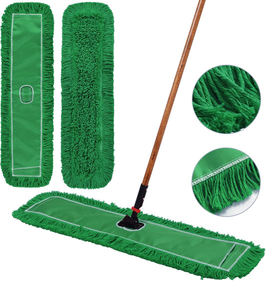 Matthew Cleaning 36'' Industrial Strength Cotton Dust Mop Refill Washable Replacement Heads for Residential & Commercial Use Fit Standard Dust Mop Frames, Hardwood, Concrete Floors Green 12 Pack