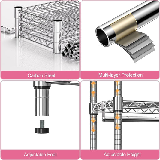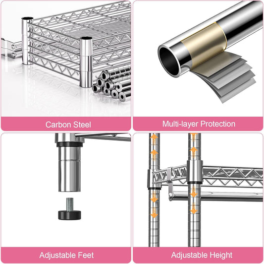 Heavy Duty Rolling Garment Rack 3 Tiers Adjustable Wire Shelving Clothes Rack with Rods and Side Hooks,Storage Closet Clothing Rack with Wheels Chrome 17.7" D x 47.2" W x 83.6" H