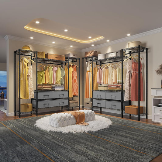 VIPEK V20 Wire Garment Rack Heavy Duty Clothes Rack, Metal Clothing Rack with 6 Shelves, 3 Hang Rods & 4 Fabric Drawers, Compact Wardrobe Closet, 56.7" L x 14.6" W x 70.9" H, Black