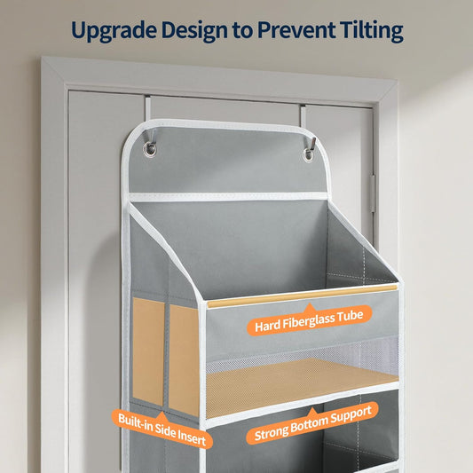 Yecaye Over The Door Organizer Storage, 5-Tier Heavy Duty Door Organizers Hanging with 10 Side Mesh Pockets, 44 lbs Load Capacity Behind Door Storage for Bathroom Nursery Bedroom Dorm Closet, Grey