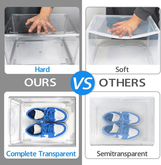 10 Pack Clear Shoe Box Shoe Storage Organizer with Magnetic Door Stackable Shoe Containers for Sneakers, High Heels, Sport Shoes, Size 13