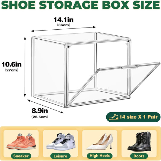 4 Pack Acrylic Shoe Boxes Sneaker Storage for Sneakerheads Clear Plastic Stackable Boot Shoe Collectibles Display Case, Size 13