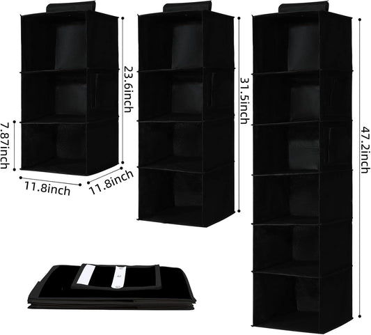 2 Packs Hanging Closet Organizer Storage, 6-Shelf Hanging Shelves for Closet, Closet Clothes Organizer and Storage with Side Pockets, Black