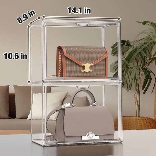 10 Pcs Clear Purse Storage Boxes, Plastic Shoe Boxes Stackable Acrylic Display Case Shoe Organizer with Magnetic Lid, Acrylic Display Box for Collectibles,Purse Organizer,Handbag,Shoes Size 14