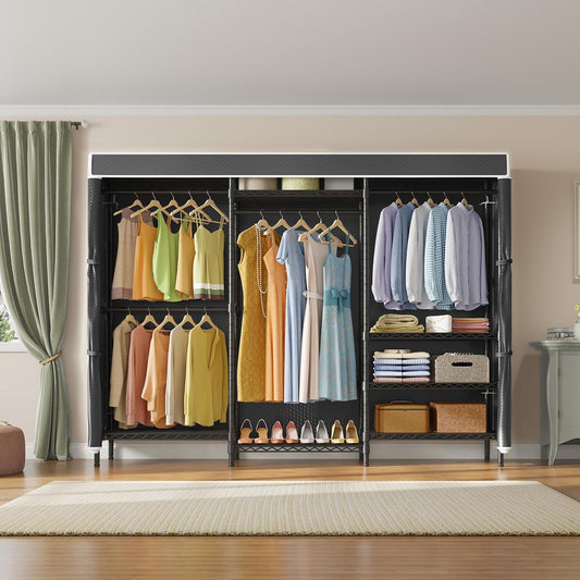 VIPEK V5C Plus Covered Clothes Rack Portable Wardrobe Closet, Heavy Duty Clothes Rack with Adjustable Shelves, Black Metal Clothing Rack with Black Upgarded Polyester Cover, Max Load 1040LBS