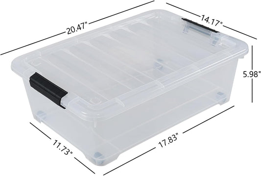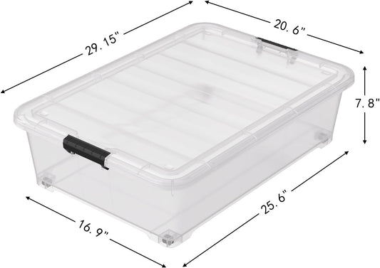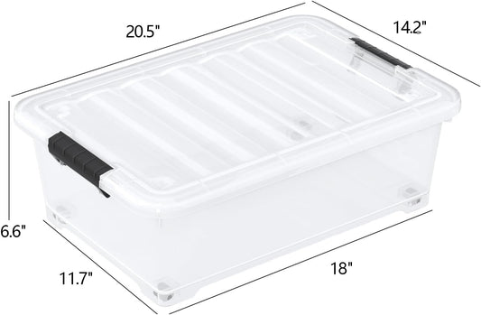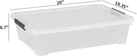 25 Quart Under Bed Clear Latch Bin with Wheel, Plastic Under Bed Storage Box, 4 Pack
