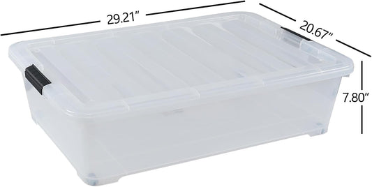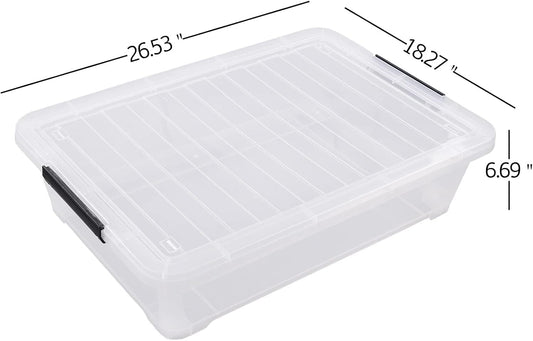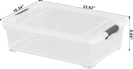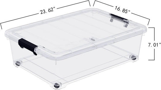 25 Quart Clear Plastic Latch Storage Box with Wheels, Under Bed Storage Box, 3 Pack