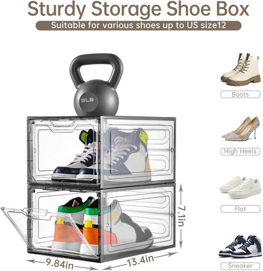 12 Pack Shoe Boxes Organizer, Magnetic Door Shoe Storage Boxes, Clear Sneaker Storage Box for Women/Men, Fit up to US Size 12