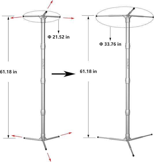 Clothes Drying Rack, Adjustable and Foldable Laundry Rack, Space Saving Hanger Rack, Retractable 47-79 Inch Clothes Rack Heavy Duty Garment Rack for Indoor/Outdoor