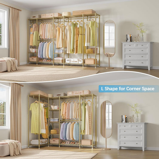 VIPEK V50 Extra Large Portable Closet Rack Bedroom Armoire Freestanding Wardrobe Closet, Heavy Duty Clothes Rack Multi-Functional Metal Clothing Rack for Hanging Clothes, Max Load 1300lbs, Gold