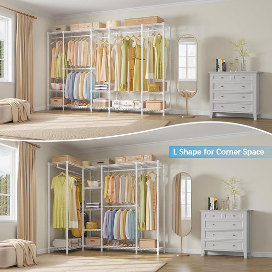 VIPEK V50 Extra Large Portable Closet Rack Bedroom Armoire Freestanding Wardrobe Closet, Heavy Duty Multi-Functional Metal Clothing Rack for Hanging Clothes, Max Load 1300lbs, White