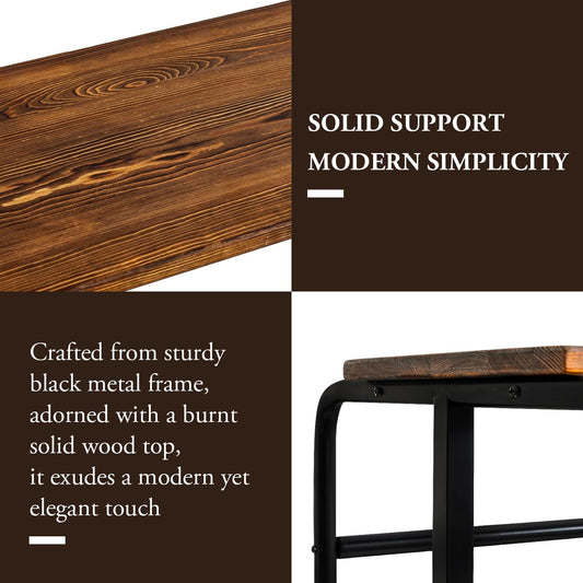 MyGift Dual Clothing Rack, Commercial Urban Black Metal Freestanding Large Garment Rack with Burnt Solid Wood Top Storage Shelf, Heavy Duty Double Rod Clothes Rack