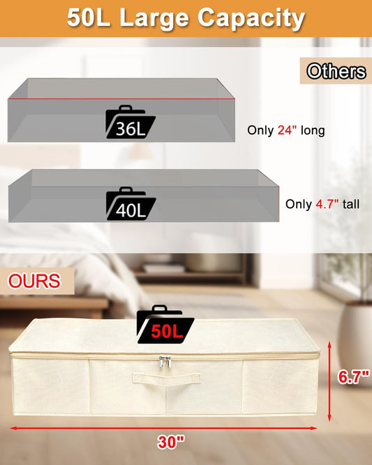 Under Bed Storage, 2 Pack Clothing Storage Bags W/Upgraded Handles, Large Capacity Underbed Shoe Container Organizer, Breathable Dorm Essentials Bins for Blanket, Pillows, Comforters & Quilts, Beige