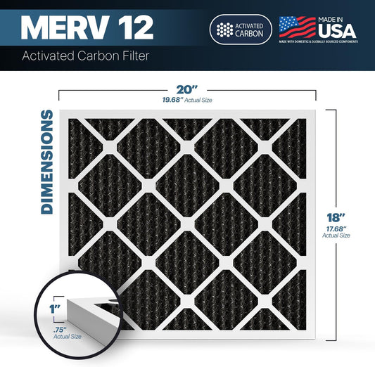 BNX TruFilter 18x20x1 MERV 12 Odor Defense (6-Pack) AC Furnace Air Filter with Activated Carbon - MADE IN USA - Pleated Air Conditioner HVAC AC Furnace Filters - Removes Odor, Mold, Bacteria, Smoke