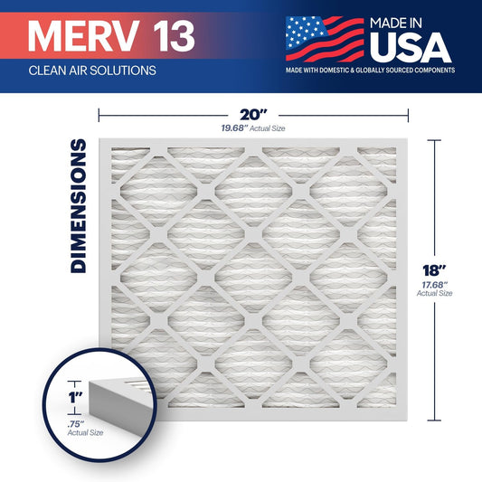 BNX TruFilter 18x20x1 Air Filter MERV 13 (12-Pack) - MADE IN USA - Electrostatic Pleated Air Conditioner HVAC AC Furnace Filters for Allergies, Pollen, Mold, Bacteria, Smoke, Allergen, MPR 1900 FPR 10
