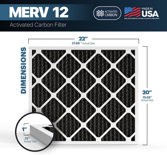 BNX TruFilter 20x22x1 MERV 12 Odor Defense (4-Pack) AC Furnace Air Filter with Activated Carbon - MADE IN USA - Pleated Air Conditioner HVAC AC Furnace Filters - Removes Odor, Mold, Bacteria, Smoke