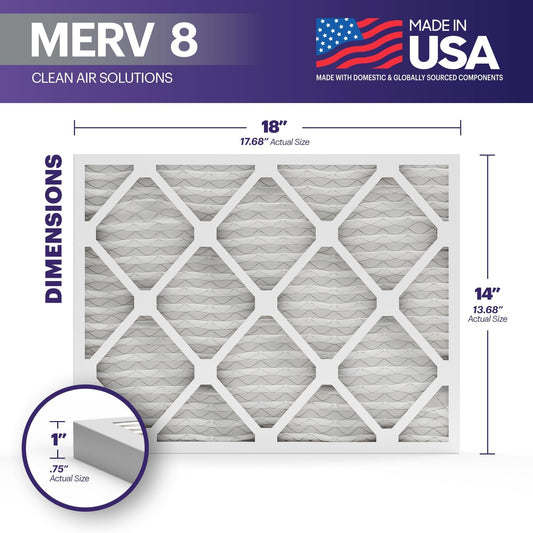 BNX TruFilter 14x18x1 Air Filter MERV 8 (6-Pack) - MADE IN USA – Dust & Pet Defense Electrostatic Pleated Air Conditioner HVAC AC Furnace Filters for Dust, Pet, Mold, Pollen MPR 600 – 700 & FPR 5