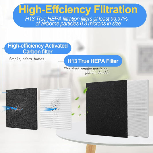 2 Pack Air Purifiers For Home Bedroom, Honeyuan H13 HEPA Air purifier with 360°Air Intake, Coverage up to 650ft², 3 Fan Speeds, Low to 24dB