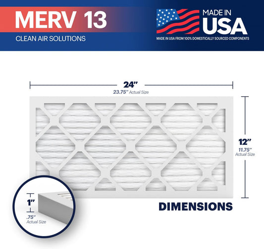 BNX TruFilter 12x24x1 Air Filter MERV 13 (4-Pack) - MADE IN USA - Electrostatic Pleated Air Conditioner HVAC AC Furnace Filters for Allergies, Pollen, Mold, Bacteria, Smoke, Allergen, MPR 1900 FPR 10