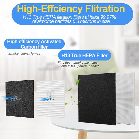 Air Purifiers for pets- Honeyuan H13 HEPA Air Purifier for home, Large Room, Coverage of 600 sqft, Air purifiers with 360°Air Intake, 3 Fan Speeds, 3-Stage Filtration, 24db Sleep Mode, Black