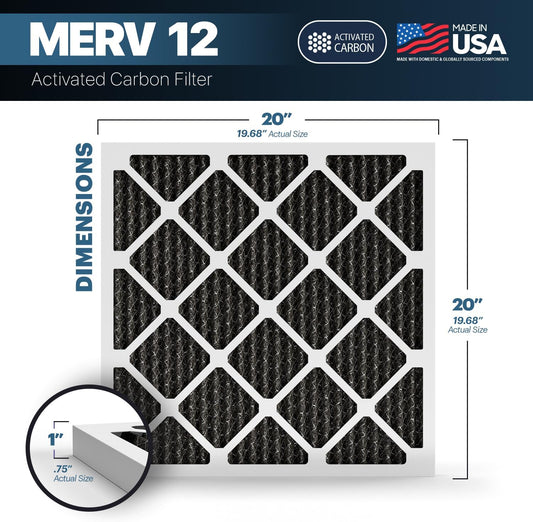 BNX TruFilter 20x20x1 MERV 12 Odor Defense (6-Pack) AC Furnace Air Filter with Activated Carbon - MADE IN USA - Pleated Air Conditioner HVAC AC Furnace Filters - Removes Odor, Mold, Bacteria, Smoke