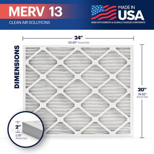 BNX TruFilter 20x24x2 Air Filter MERV 13 (4-Pack) - MADE IN USA - Electrostatic Pleated Air Conditioner HVAC AC Furnace Filters for Allergies, Pollen, Mold, Bacteria, Smoke, Allergen, MPR 1900 FPR 10