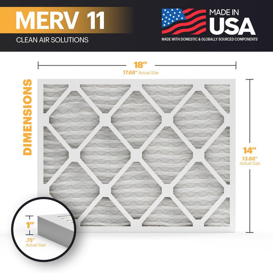 BNX TruFilter 14x18x1 Air Filter MERV 11 (6-Pack) - MADE IN USA - Allergen Defense Electrostatic Pleated Air Conditioner HVAC AC Furnace Filters for Allergies, Dust, Pet, Smoke, Allergy MPR 1200 FPR 7