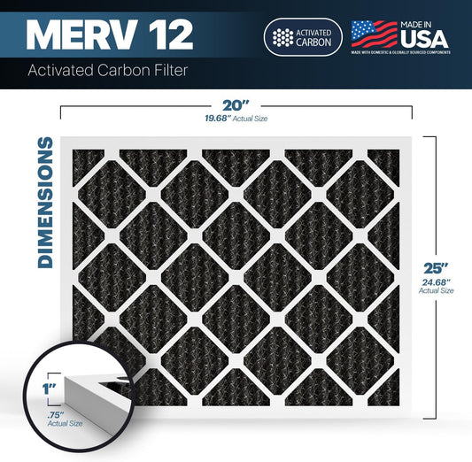 BNX TruFilter 20x25x1 MERV 12 Odor Defense (4-Pack) AC Furnace Air Filter with Activated Carbon - MADE IN USA - Pleated Air Conditioner HVAC AC Furnace Filters - Removes Odor, Mold, Bacteria, Smoke