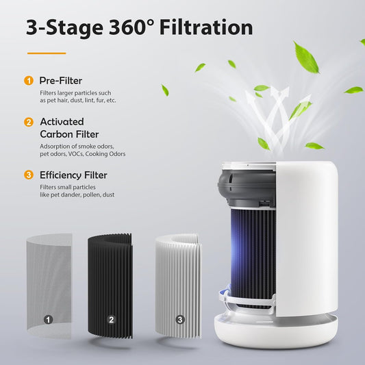 Afloia Air Purifier for Home, 4-in-1 Washable Filter for Allergies, Covers Up to 1076 ft², Quiet Operation, Auto Shut-Off & Night Light, Removes Pet Dander, Pollen, Dust, Mold, and Smoke, White,Pluto