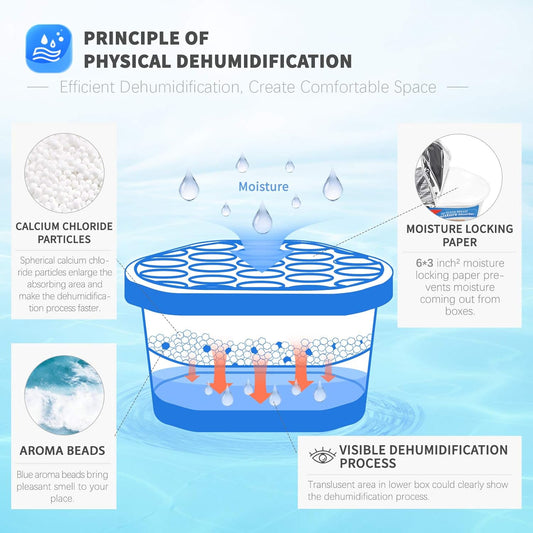 Vacplus Moisture Absorbers 6 Pack, 10.5 Oz Portable Humidity Absorber Boxes for Your Bathroom, Closet & Car, Dehumidifier with Ocean Fragrance, Light Blue