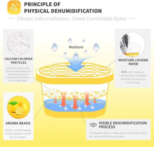Vacplus Moisture Absorbers 6 Pack, 10.5 Oz Portable Humidity Absorber Boxes for Your Bathroom, Closet & Car, Dehumidifier with Lemon Fragrance, Yellow