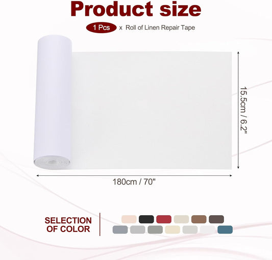 PATIKIL 70x6.2 Inch Linen Repair Tape, Repair Fabric Patch Self Adhesive Couch Patch Line Repair Patch for Furniture Sofa Car Seats Office Chairs, White