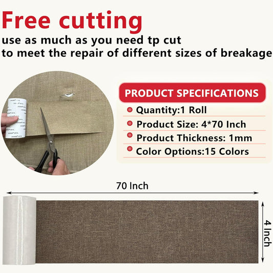 Linen Repair Tape 4x70 Inch Self-Adhesive Couch Patch Repair Fabric Patch for Furniture,Sofas,Cushion,Chairs,Bags,Linen Goods(Coffee)