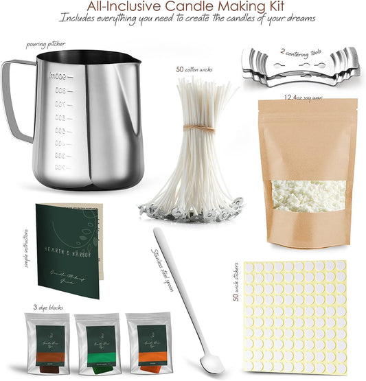 Hearth & Harbor Soy Candle Wax for Candle Making - Natural Soy Wax for Candle Making 12.4 oz Bag, Premium Soy Wax Flakes, 50 Cotton Candle Wicks, 50 Wick Stickers, & 2 Centering Devices