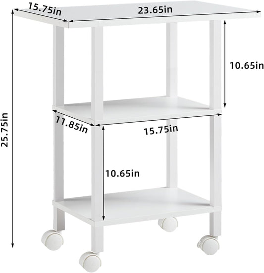 Lerliuo White 3 Tier Printer Stand with Storage, Printer Table for Home Office, Wooden Rolling Printer Cart Shelf with Lockable Wheels fit Fax Machine, Scanner