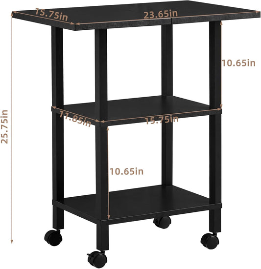 Lerliuo 3 Tier Printer Stand with Storage, Printer Table for Home Office, Wooden Rolling Printer Cart Shelf with Lockable Wheels fit Fax Machine, Scanner(Black)