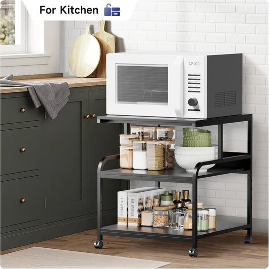 Printer Stand, 24''×24''×29'' Large Printer Table for Home Office with Locking Casters, Heavy Duty Sturdy 3-Tier Rolling Cart with Adjustable Shelf, Mini Fridge Stand, Home Office Essentials, Black