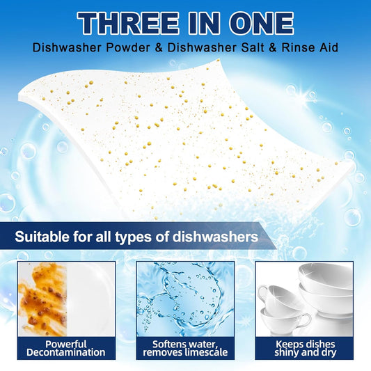 Eco Dishwasher Detergent Sheets Up To 160 Loads, Unscented Plastic Free Dishwashing Soap Strips With High Efficient Solid Enzyme, Leaving Dishes Sparkling Clean