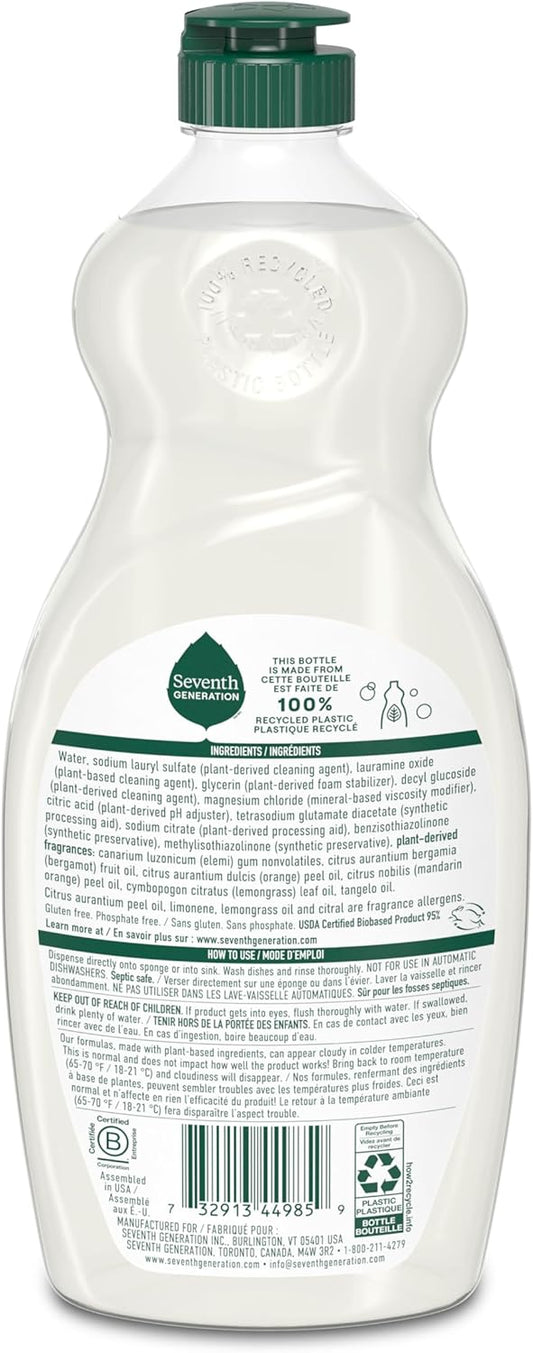 Seventh Generation Dish Liquid Soap Clementine Zest Lemongrass Pack of 6 Dishwashing Soap Liquid Soap 19 oz