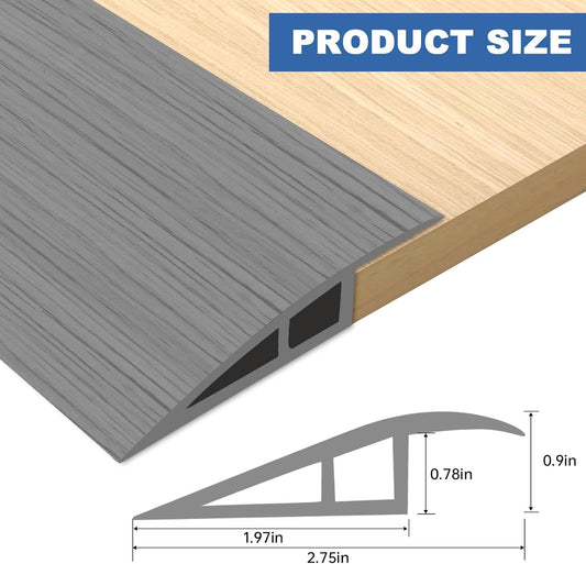 Vinyl Door Threshold Flooring Transition Strip Self Adhesive Carpet Edging Strip for Laminate Doorway Edge Threshold from 3/5" to 4/5" (Light Gray Wood Grain, 6.6 Ft)