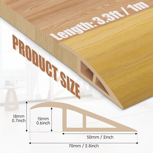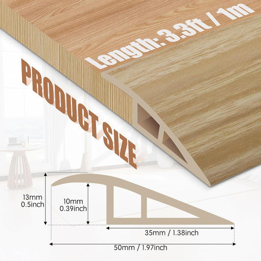 Vinyl Door Threshold Flooring Transition Strip Self Adhesive Carpet Edging Strip for Laminate Doorway Edge Threshold from 3/5" to 4/5" (Beige Wood Grain, 3.3 Ft)