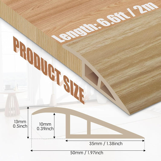 Floor Transition Strip Vinyl Door Threshold Ramp Self Adhesive Carpet Edging Strip Doorway Edge Trim, Overlap Edge Reducer for Laminate Carpet, Floor, Tile (Yellow Wood, 1/5" to 2/5", 6.6Ft)